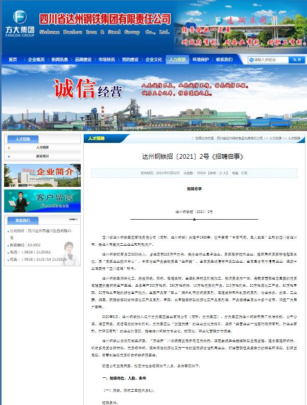 我司在招聘過程中不收取報名費(fèi)、中介費(fèi)、手續(xù)費(fèi)、資料費(fèi)等任何費(fèi)用,達(dá)州鋼鐵官網(wǎng)發(fā)布的招聘啟事為本次招聘的唯一宣傳資料,請應(yīng)聘者注意識別,謹(jǐn)防受騙。對于發(fā)布虛假招聘信息或在招聘中牟取任何利益的個人或機(jī)構(gòu),我公司保留追究法律責(zé)任的權(quán)利,招聘舉報電話:19511804325。